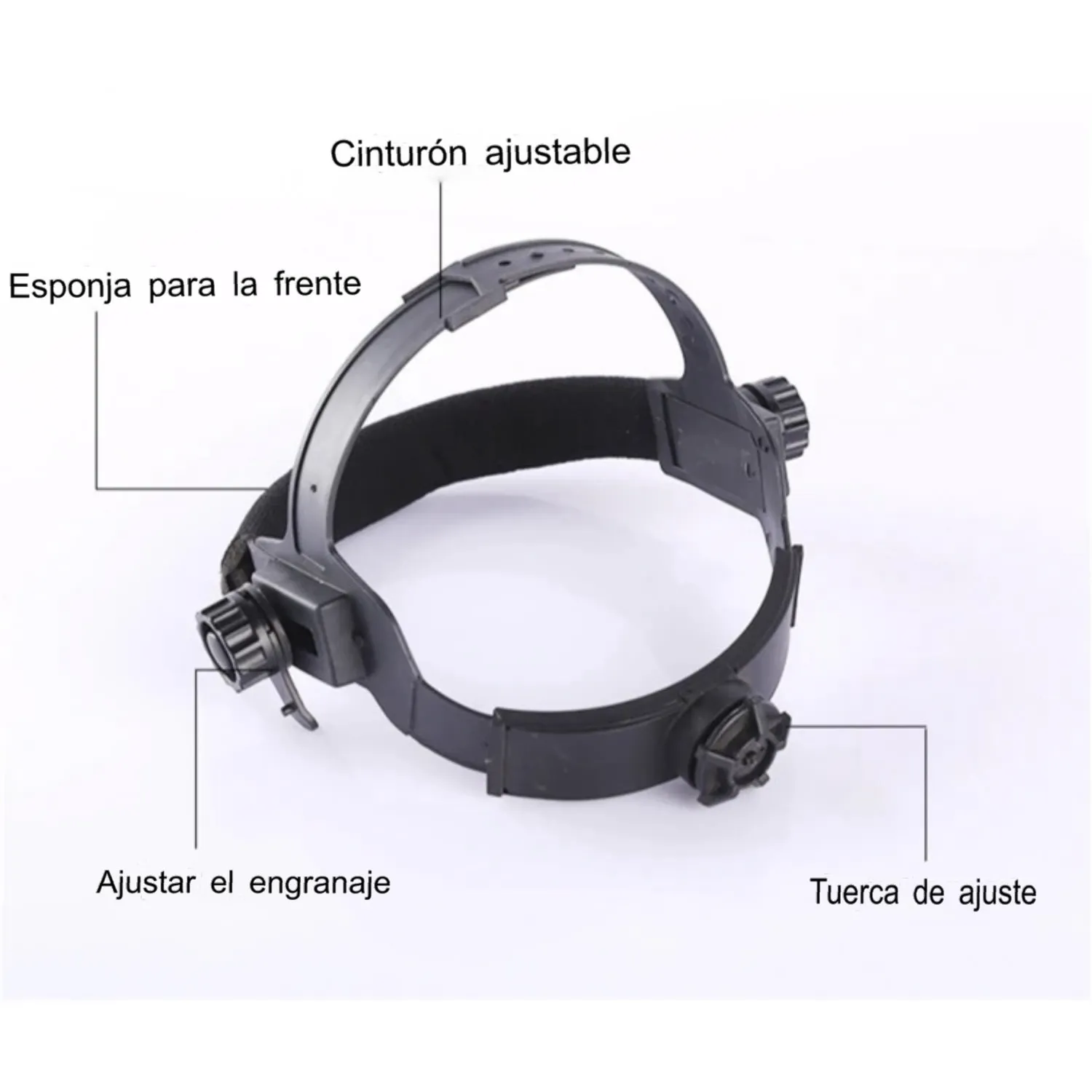 La correa que incluye la máscara es ajustable, extraíble y tiene un botón en la parte posterior que puede presionar y girar para apretar o liberar. Con esta máscara, puede trabajar de forma segura, ya que protege contra chispas, parpadeos y residuos de radiación, atenúa la pantalla durante la soldadura, filtra automáticamente la luz dañina, protege los ojos, se usa para soldar y reparar trabajos.