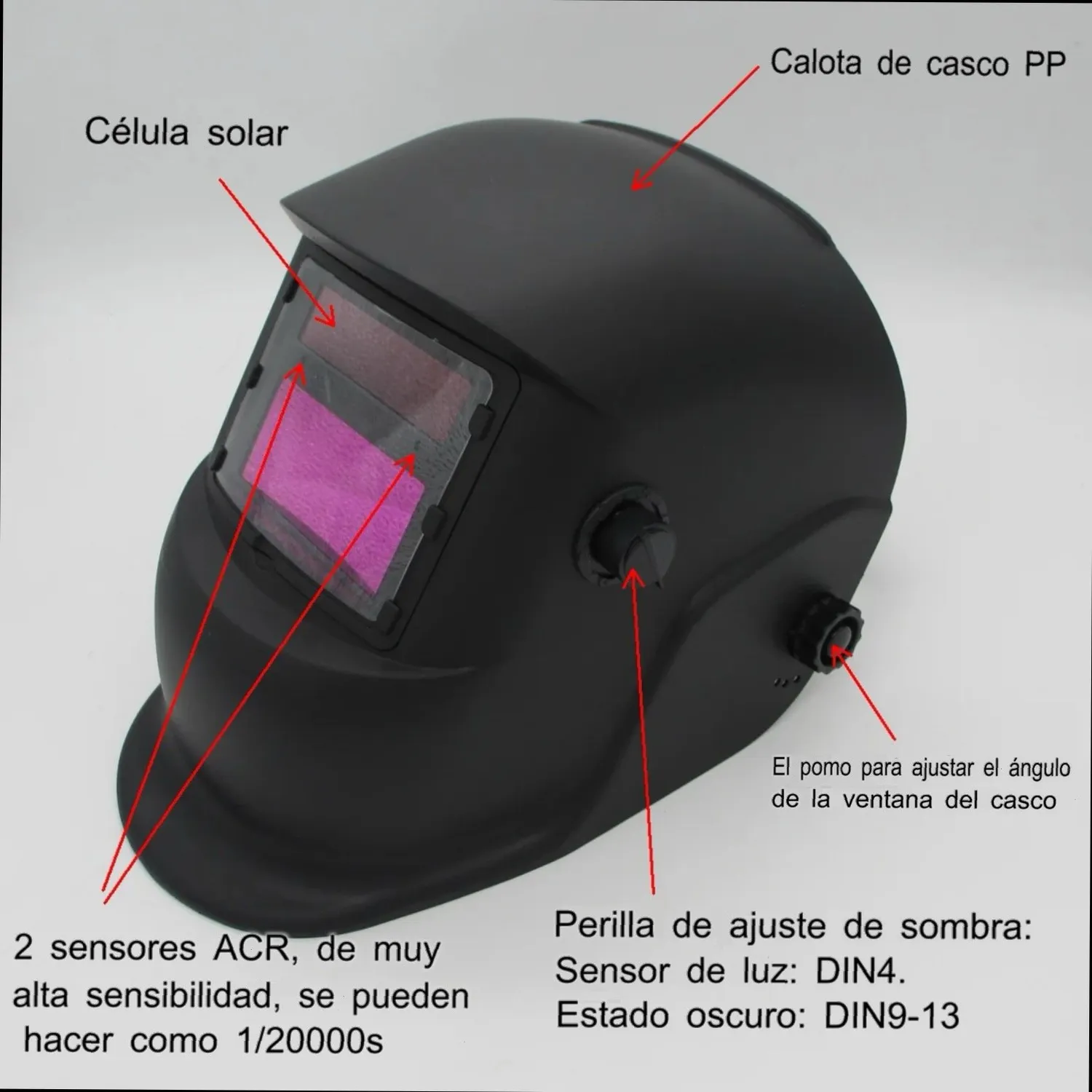 Cascos o máscaras de soldadura con atenuación automática, sensibilidad y ajuste de tiempo de retraso