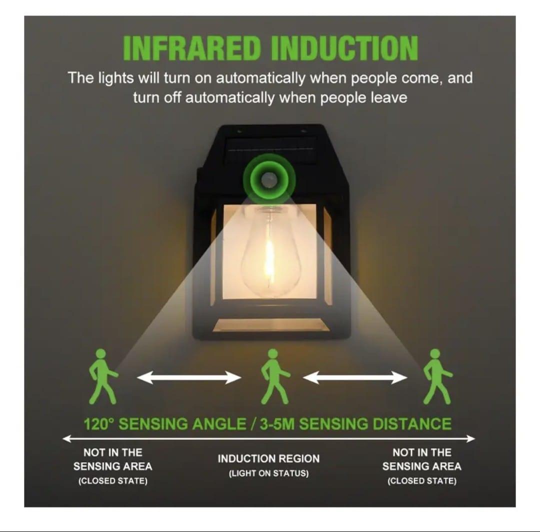 La lámpara de pared solar con lámpara de filamento LED combina sofisticación y practicidad para la iluminación exterior. Durante el día, la carga solar es automática, lo que prepara la lámpara para que funcione al anochecer. Por la noche, el sistema de iluminación se ajusta automáticamente a la función seleccionada, creando un ambiente acogedor y seguro.
