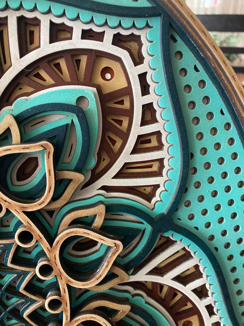 Decoración de pared , bella mándala 40x40cm, ideal para cualquier espacio de casa u oficina realizada en madera de 8 capas cortada en laser pintada a mano