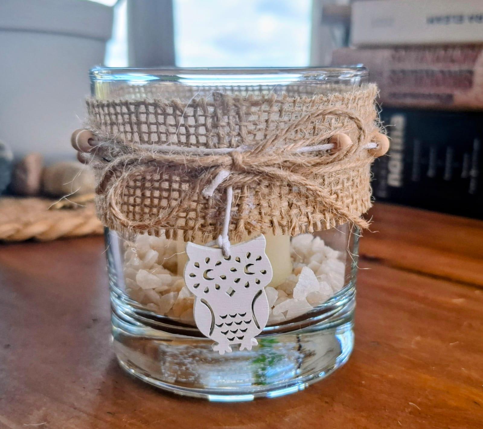Portavelas vidrio Búho Cuarzo